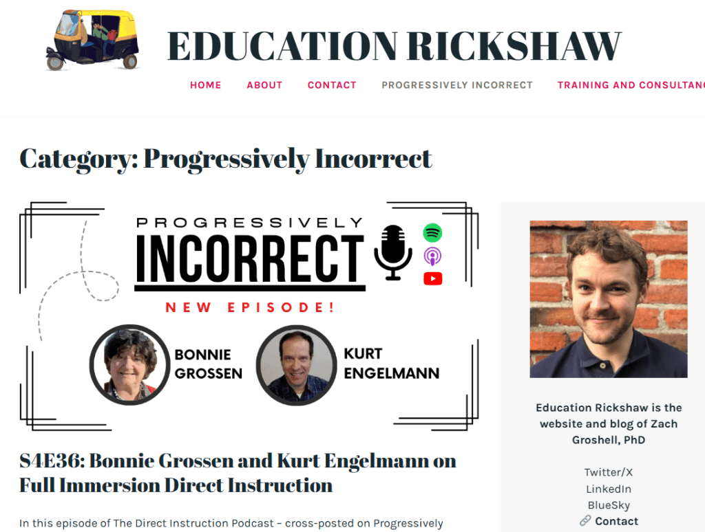 Super interesting and useful podcasts, research informed practice in the classroom, particularly direct instruction