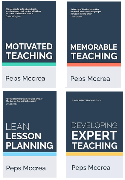 Motivated Teaching, Memorable Teaching, Lean Lesson Planning, and Developing Expert Teaching by Peps Mccrea