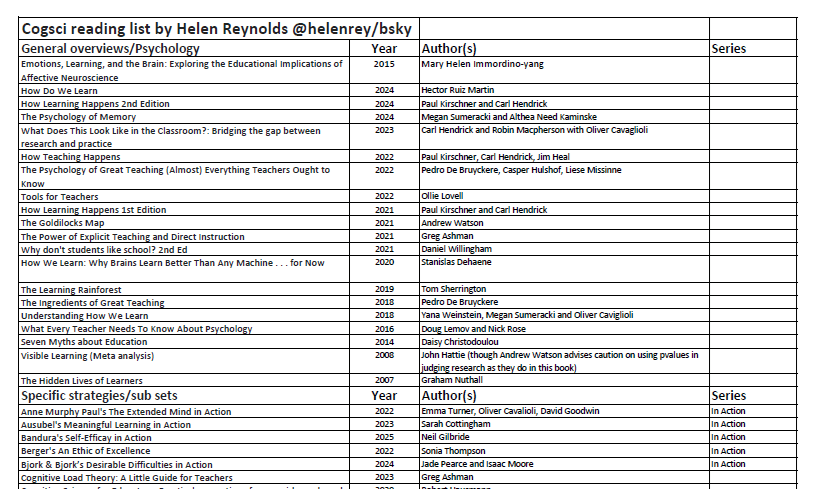 - Here is a reading list of 73 books about cognitive science and its application to the classroom.